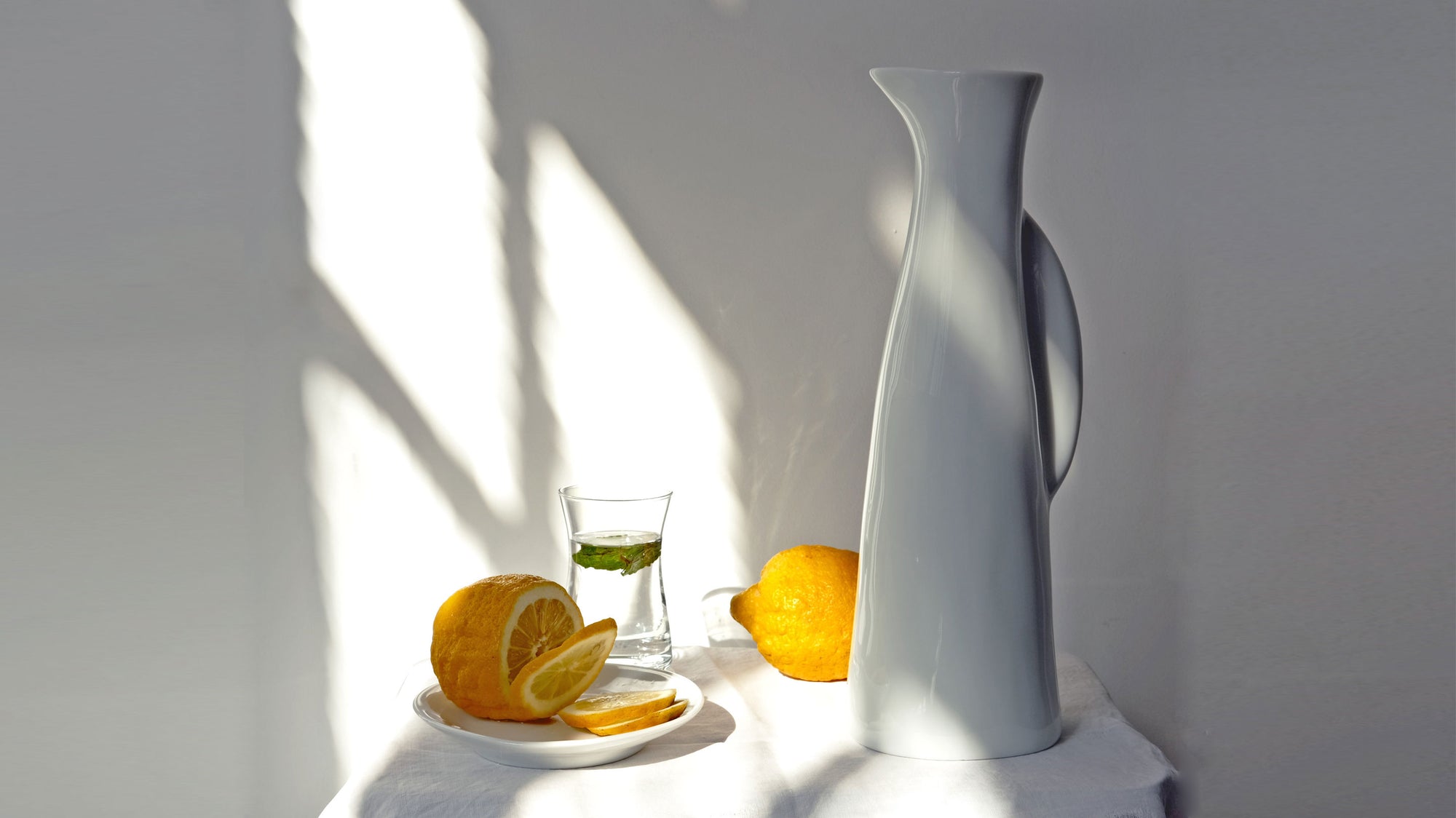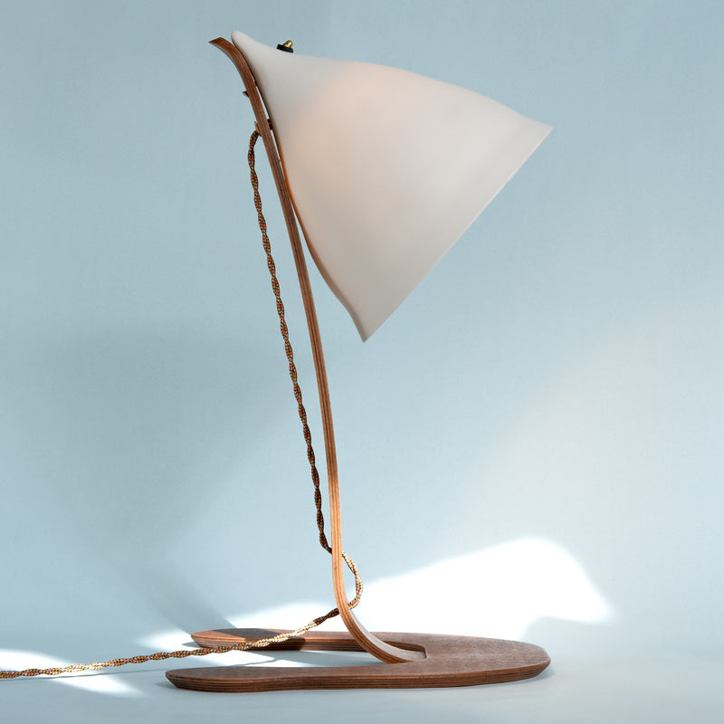 Haussée sur son trône de bois ambré, elle règne avec une immobilité souveraine, silhouette élancée veillant sur l’ombre et la lumière. Sa porcelaine semble retenir un souffle lumineux, comme si la nuit elle‑même s’inclinait devant son éclat contenu.